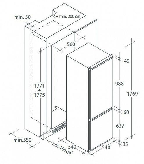 | Тип | встраиваемый холодильник |