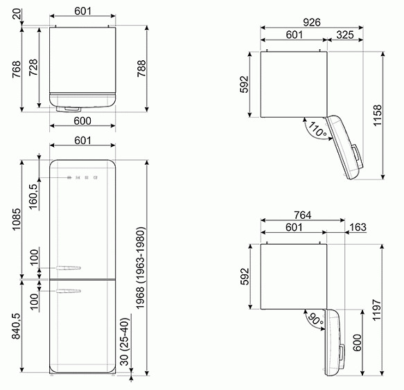 | Ширина с дверцей, открытой на 90°С | 119.7 см |