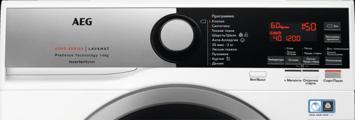| Чрезвычайно малое энергопотребление | 0.75 кВтч, 47 л для программы Хлопок 60°C при загрузке 6 кг |