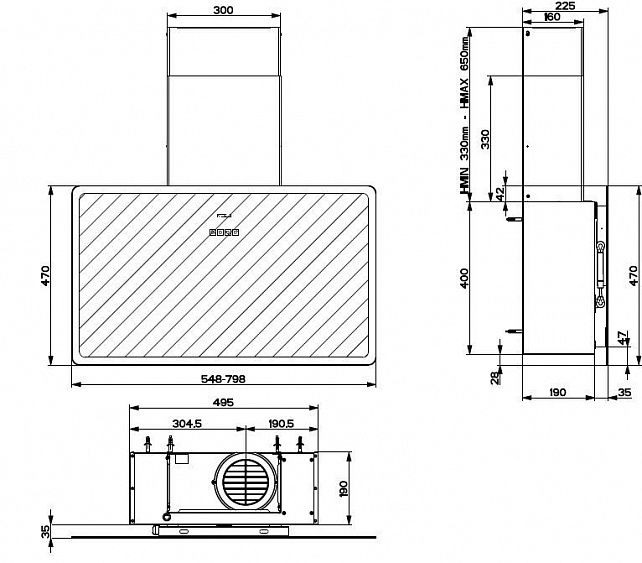 | Тип | каминная пристенная, наклонная вытяжка |