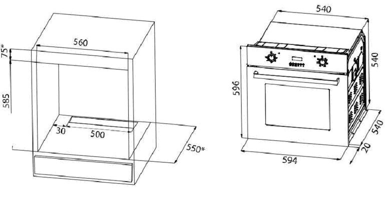 | Размеры ниши для встраивания, В х Ш х Г (см) | 58.5 x 56 x 55 |