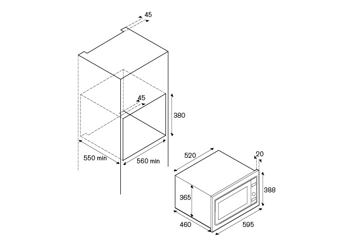 | Габариты ниши для встраивания (ВхШхГ) | 450х558-568х580 мм |